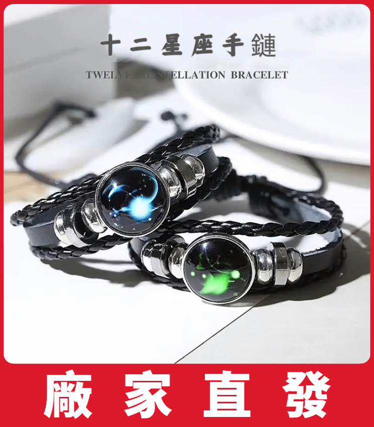 12分鐘前夜光手鍊十二星座皮繩手串學生潮人情侶飾品首飾女韓版時尚帥氣 - 【夜光手鍊十二星座 六入组】