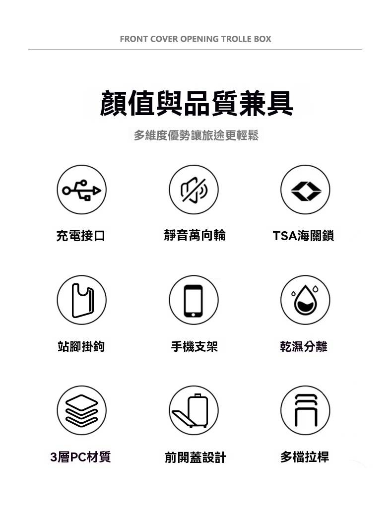 5分鐘前有了這個前開蓋行李箱,真的解放雙手又避免尷尬,太方便啦! - 20寸-加強加厚鋁框款 NT$1698