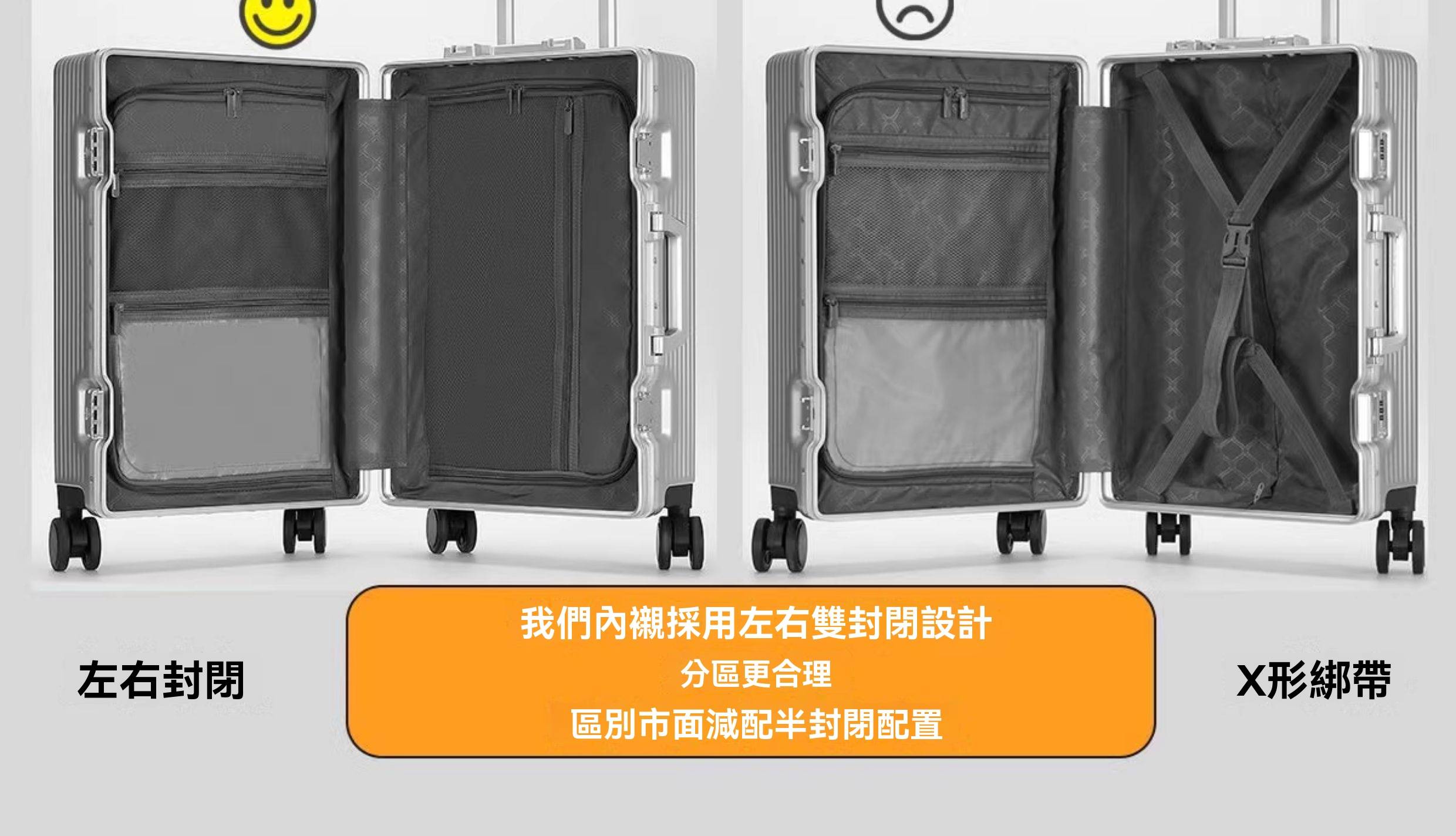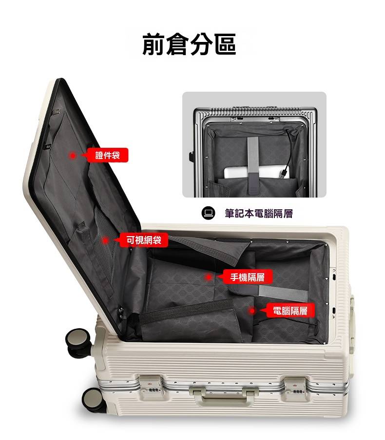 25分鐘前有了這個前開蓋行李箱,真的解放雙手又避免尷尬,太方便啦! - 24寸-加強加厚鋁框款 NT$1798