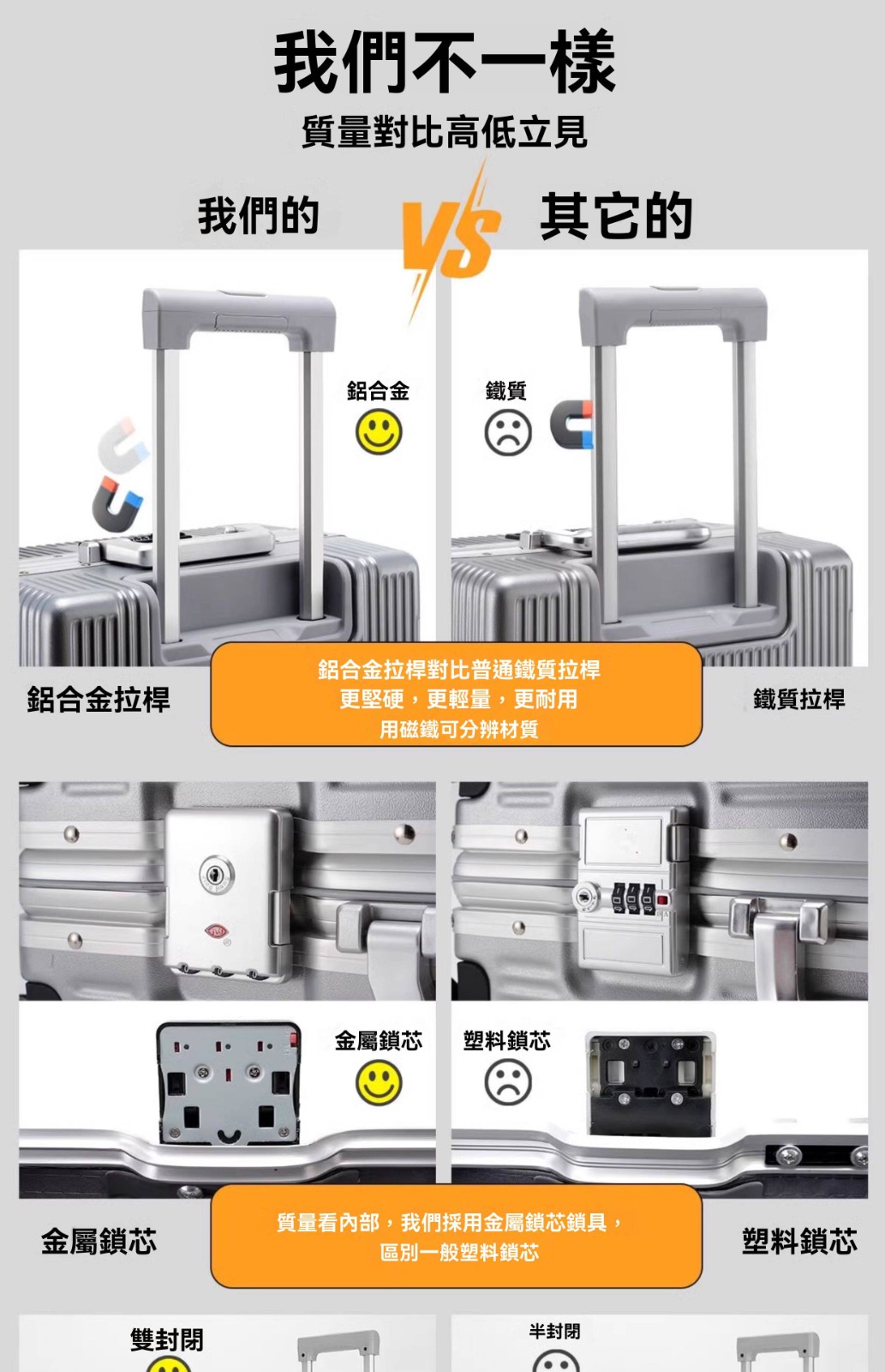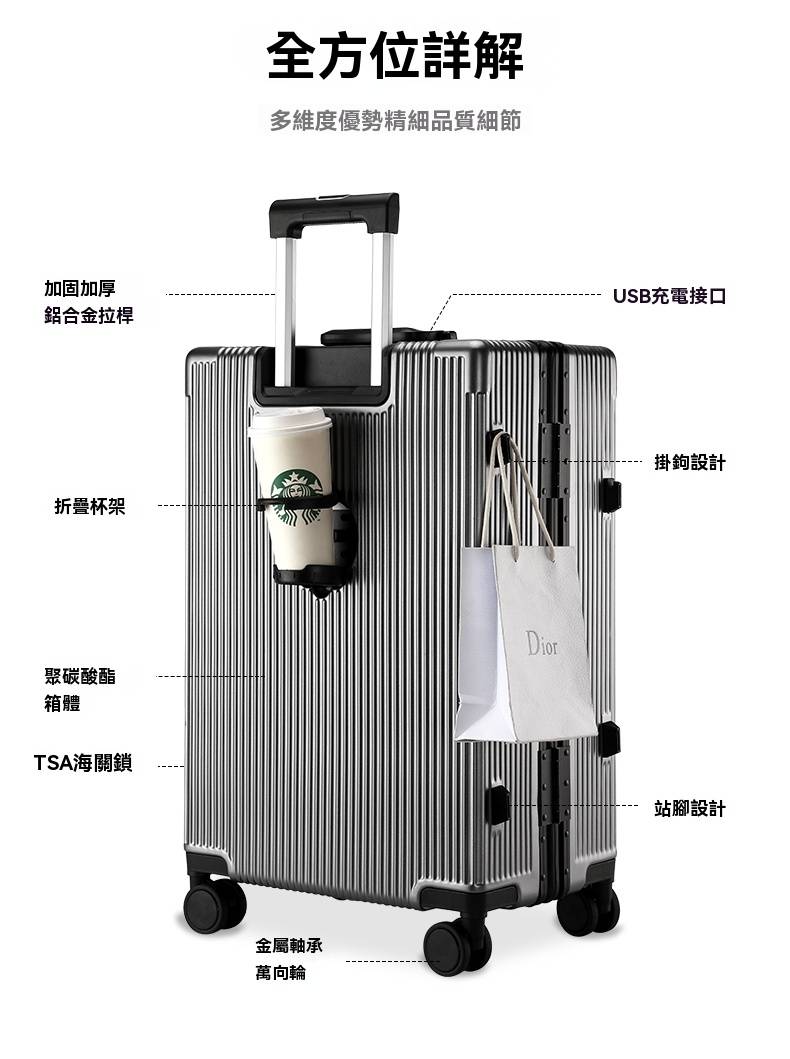 5分鐘前有了這個前開蓋行李箱,真的解放雙手又避免尷尬,太方便啦! - 24寸-加強加厚鋁框款 NT$1798