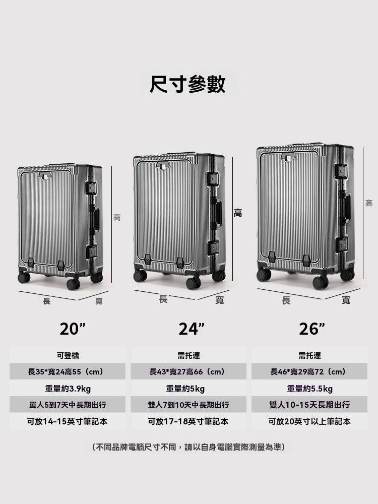 4分鐘前有了這個前開蓋行李箱,真的解放雙手又避免尷尬,太方便啦! - 26寸-加強加厚鋁框款 NT$1898